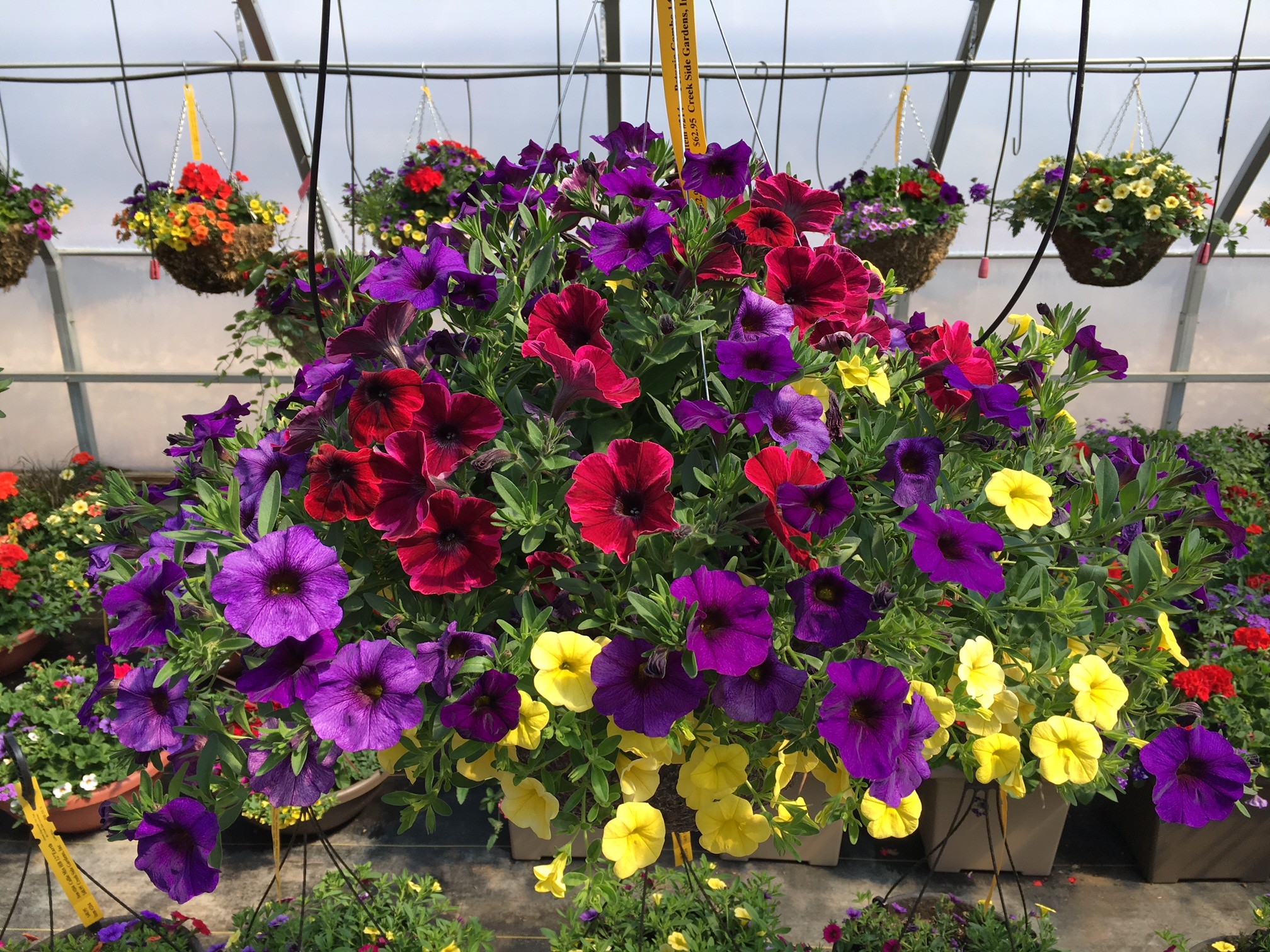 Annuals are often planted in flower pots or container gardens to be enjoyed on a patio or porch around your home. They may be planted as one type of flower all together in a container. Or they may be planted in combination with one another to create a full, colorful design that sometimes takes your breath away! These are the big, beautiful hanging baskets and container gardens that you see at Creek Side Gardens when you come to visit.